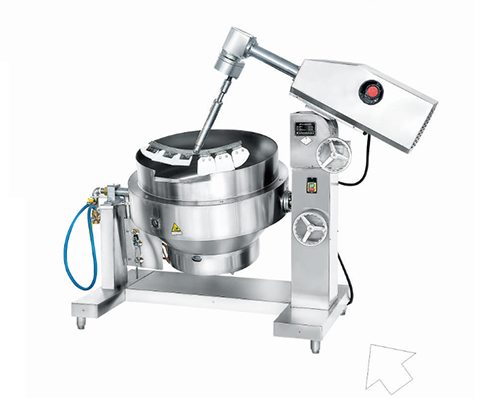 原理:1.接觸食品部分采用SUS304不銹鋼制作; 2.設備帶溫控、保溫、加熱及攪拌; 3.攪拌功率5.5KW,攪拌速度9-18r/min可調;
