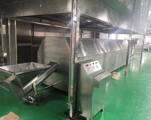 原理:1.煮椒機采用螺旋滾筒結構,煮椒機長度6000; 2.配置螺旋上料機; 3.配出料瀝水輸送機; 4.配打椒機; 5.采用蒸汽加熱(建議配置500KG以上鍋爐),采用DN40蒸汽管。
