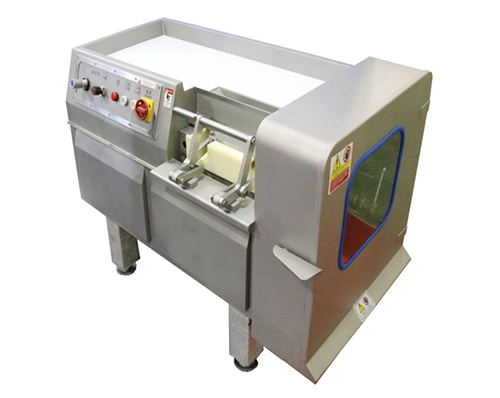 原理:低溫凍肉切丁機(jī)可完成低溫凍肉的切割,采用六導(dǎo)柱直線定位運(yùn)動(dòng)切割結(jié)構(gòu)。低溫凍肉連續(xù)切小規(guī)格片、條、丁,連續(xù)不斷的放料切割。