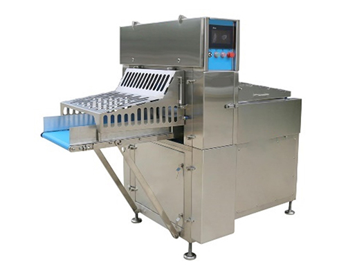 原理:排骨切塊機(jī)是帶骨類(lèi)切塊切片的機(jī)臺(tái),通過(guò)鏈板傳送,刀組切割,完成帶骨類(lèi)的切塊操作